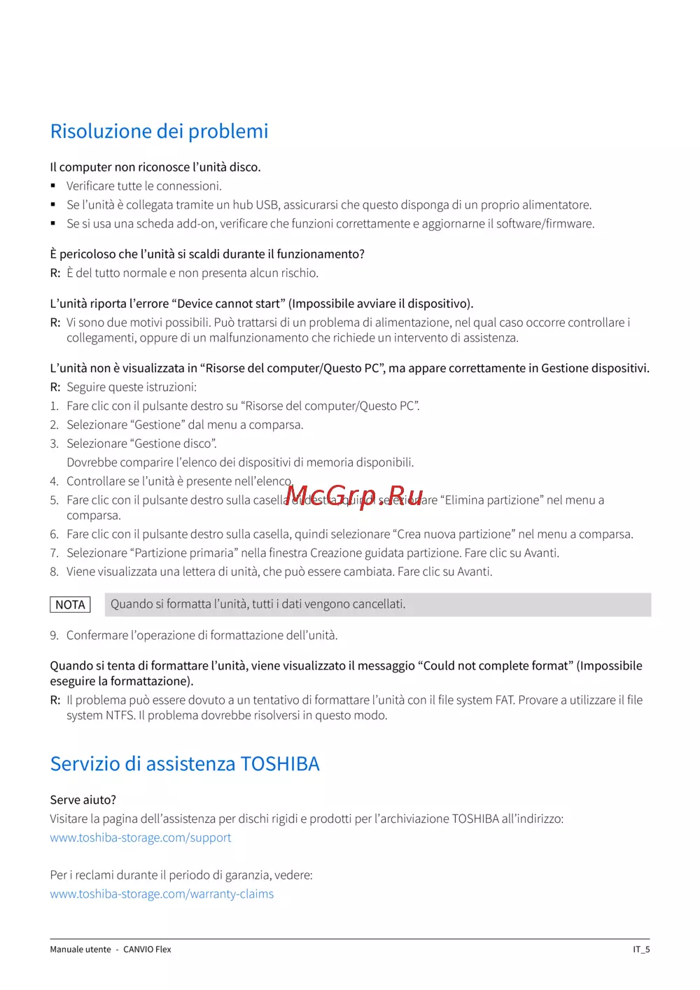 Toshiba Canvio Flex HDTX140ESCCA [76/162] Servizio di assistenza toshiba