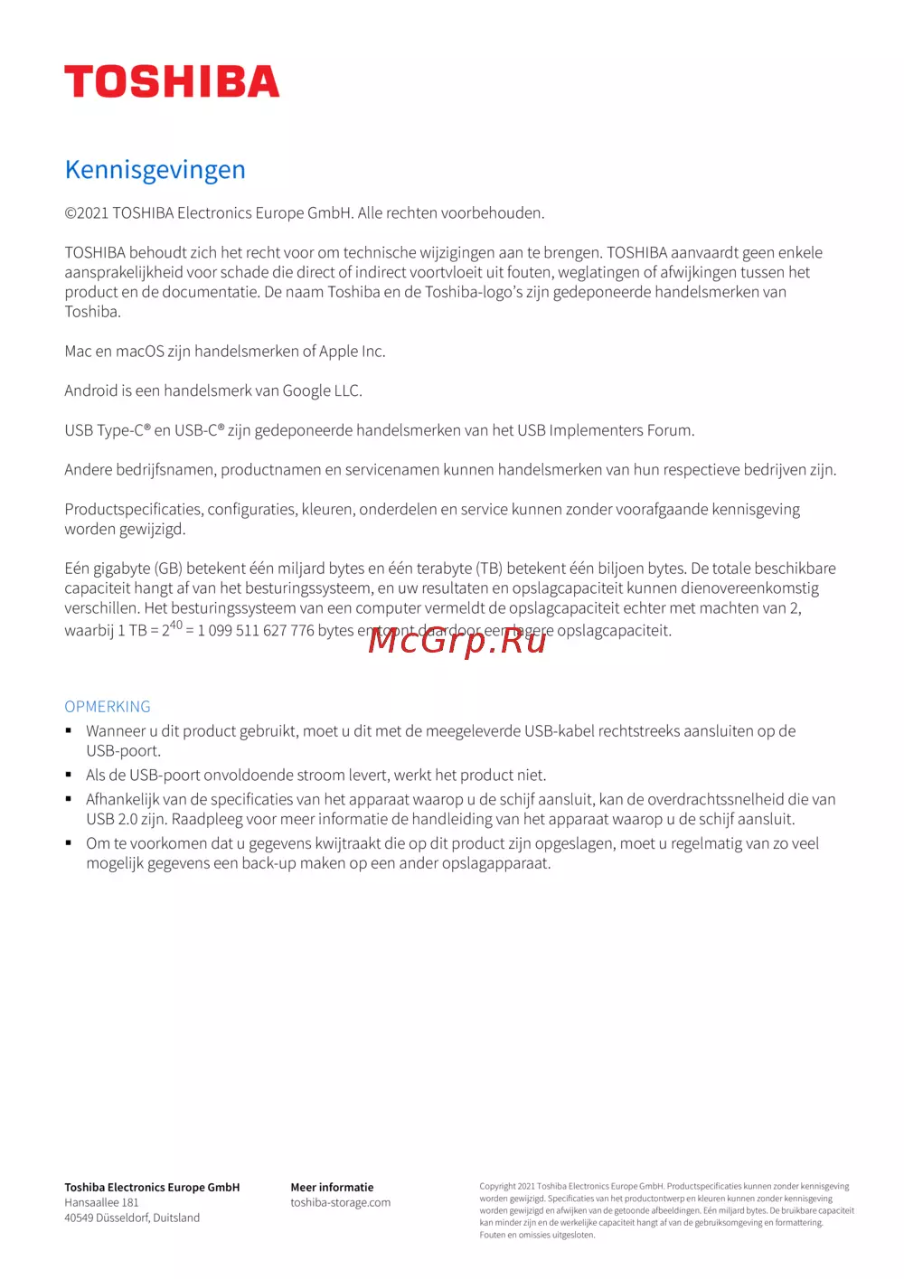 Toshiba Canvio Flex HDTX140ESCCA [85/162] Opmerking