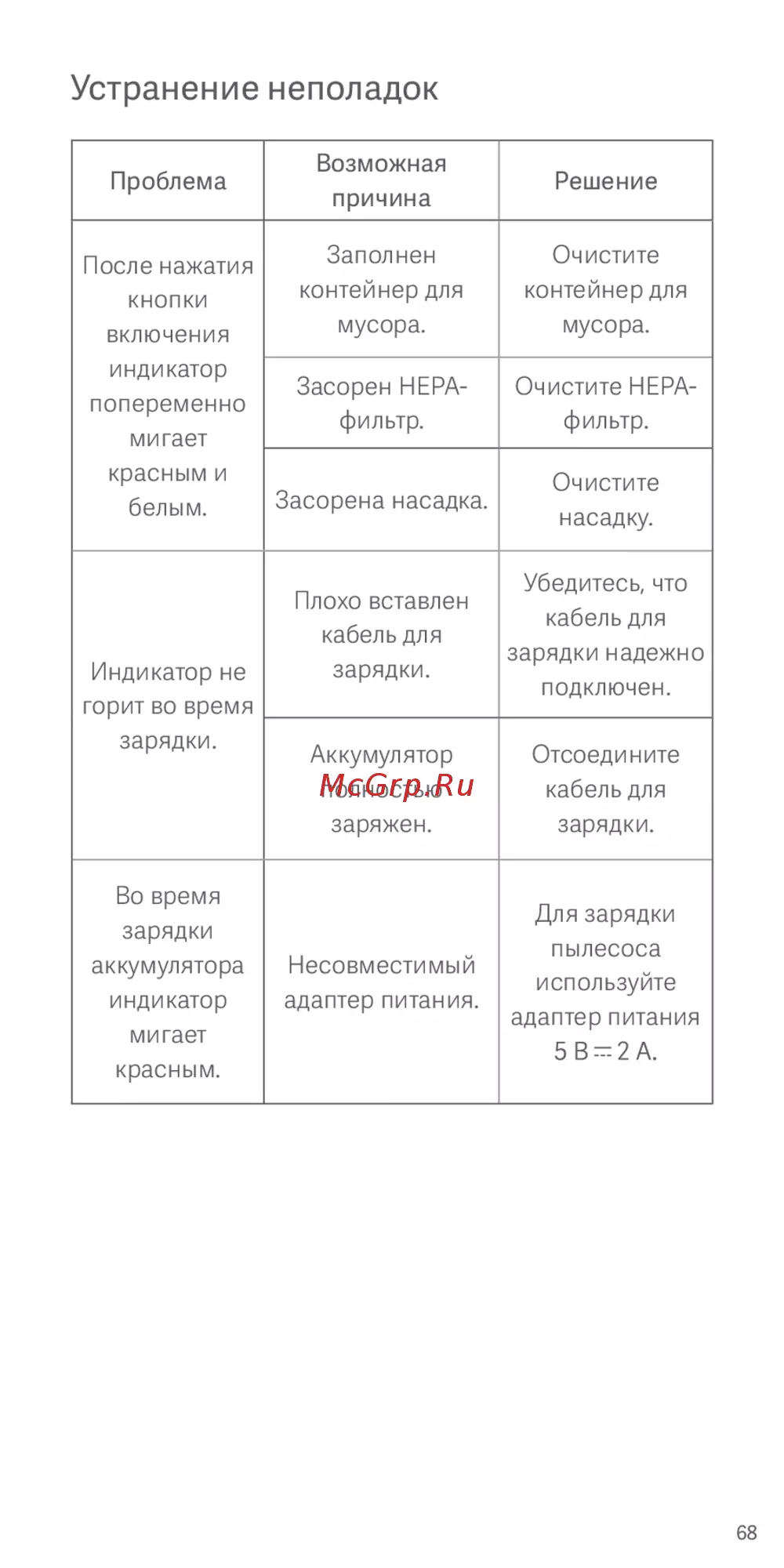Xiaomi Mi Vacuum Cleaner mini SSXCQ01XY (BHR4562GL) [69/123] Устранение неполадок