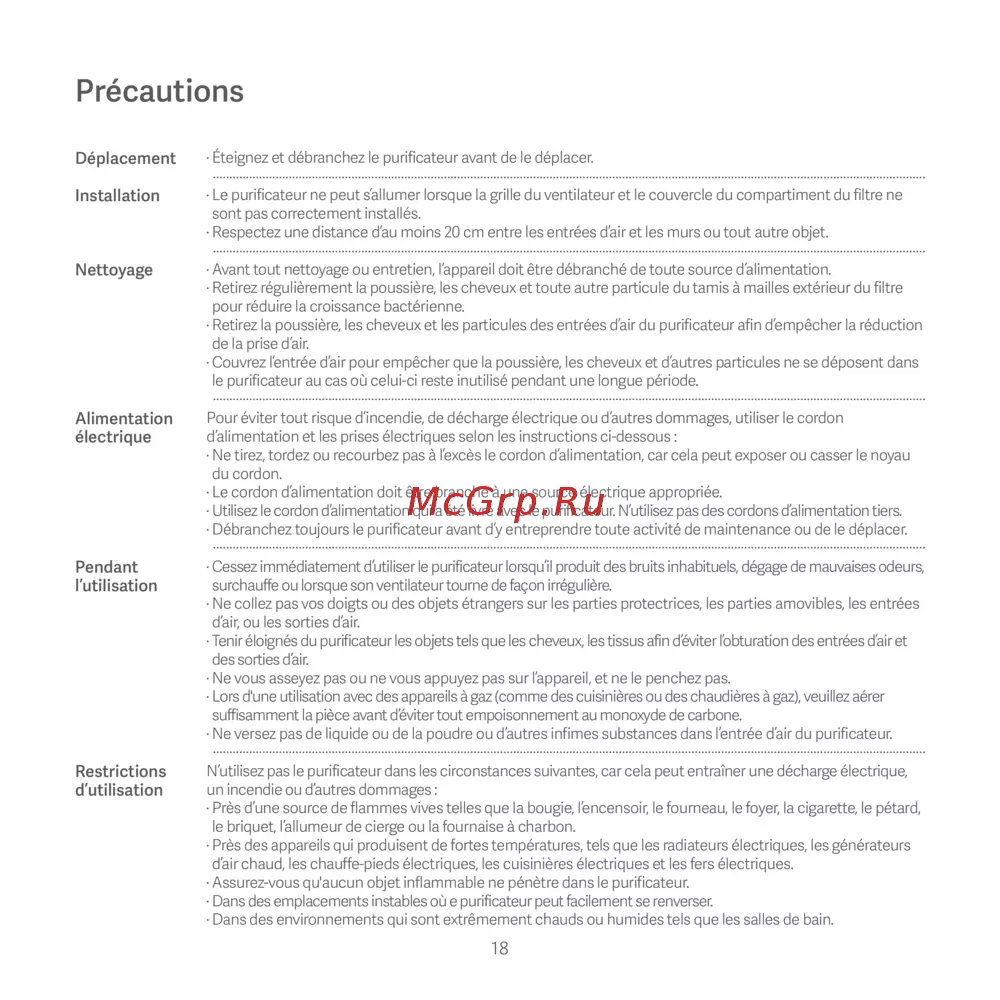 Xiaomi Mi Air Purifier 3C AC-M14-SC (BHR4518GL) [19/126] Restrictions d utilisation