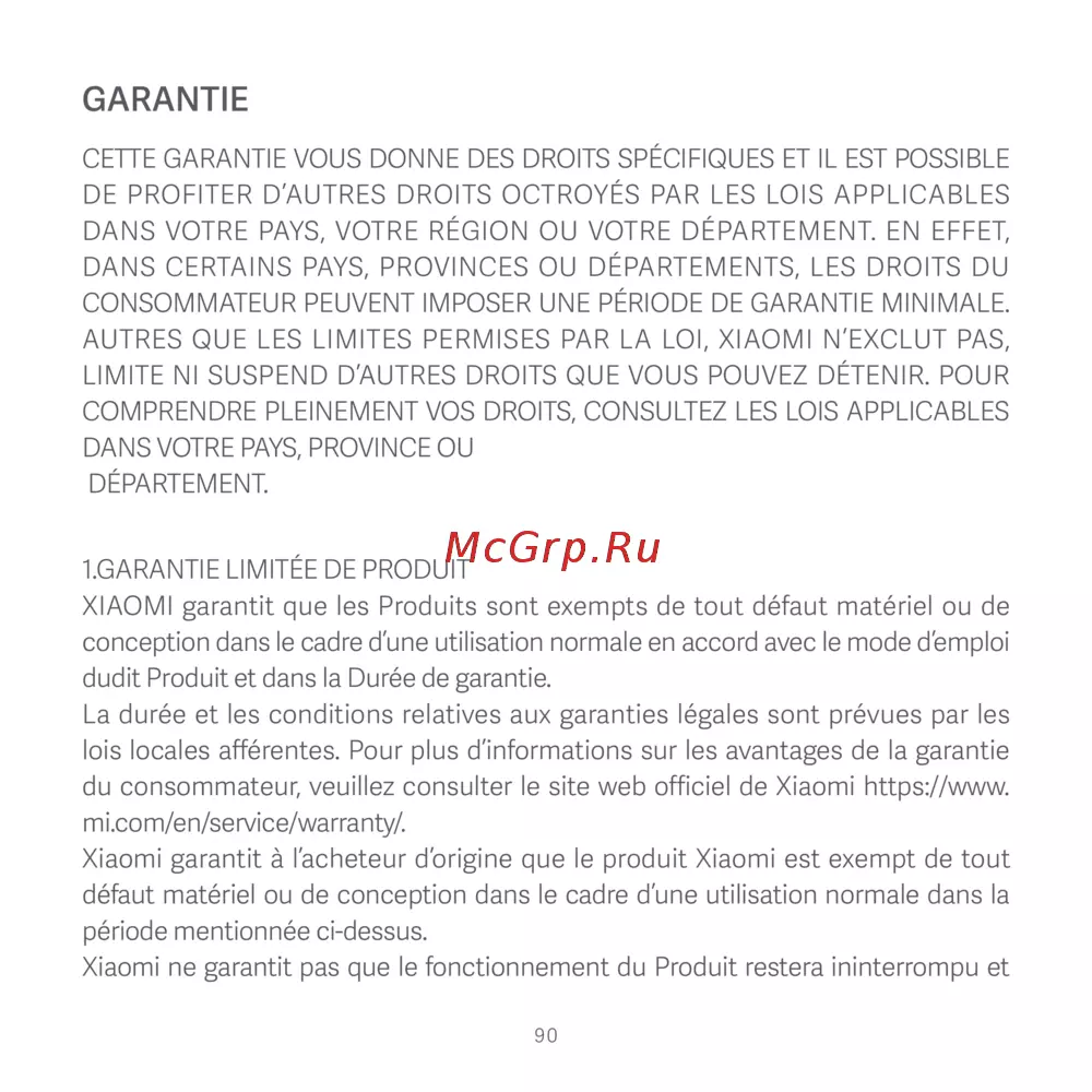 du consommateur, veuillez consulter le site web officiel de Xiaomi https://www.