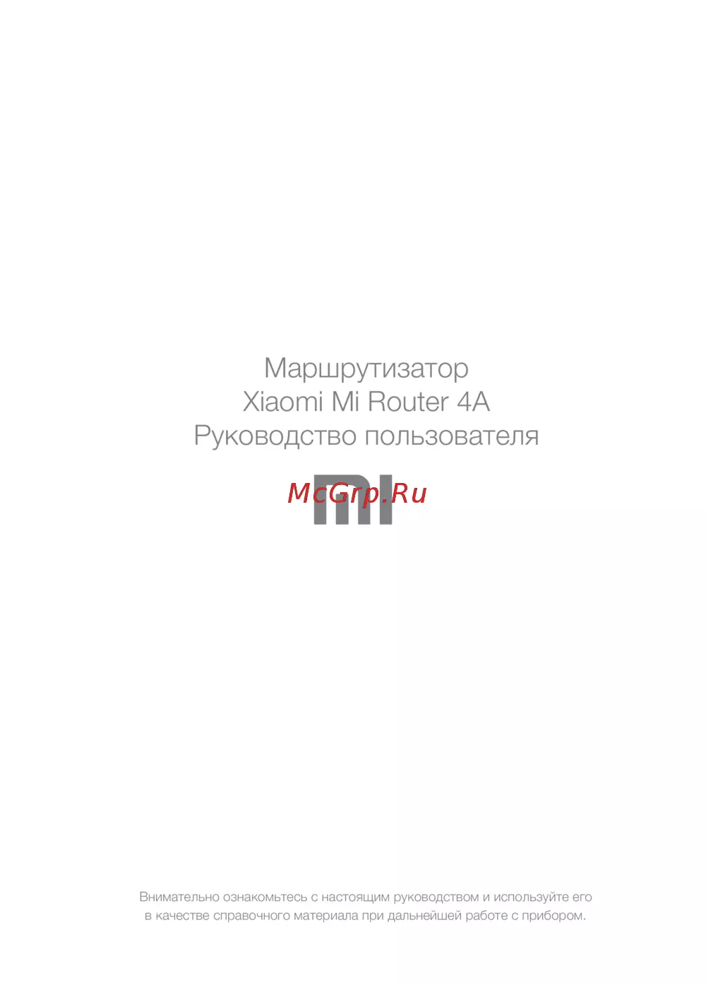 Xiaomi Wi-Fi Mi Router 4A Giga Version White (DVB4224GL)Инструкция по эксплуатации -