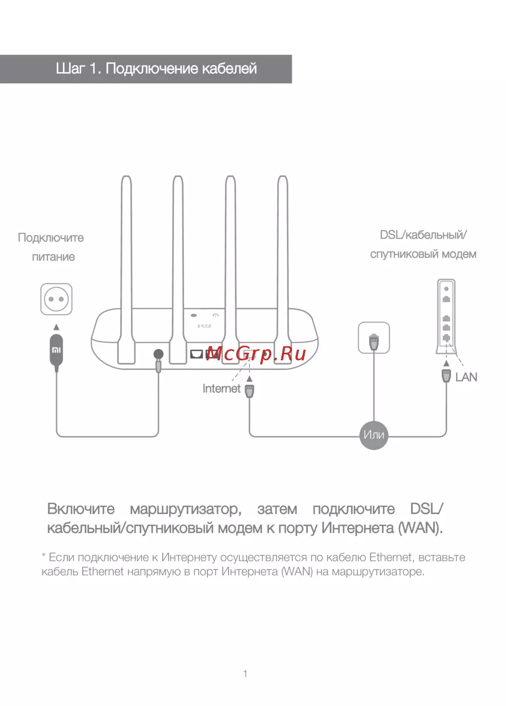 Xiaomi Wi-Fi Mi Router 4C White (DVB4231GL) [2/7] Шаг 1 подключение кабелей