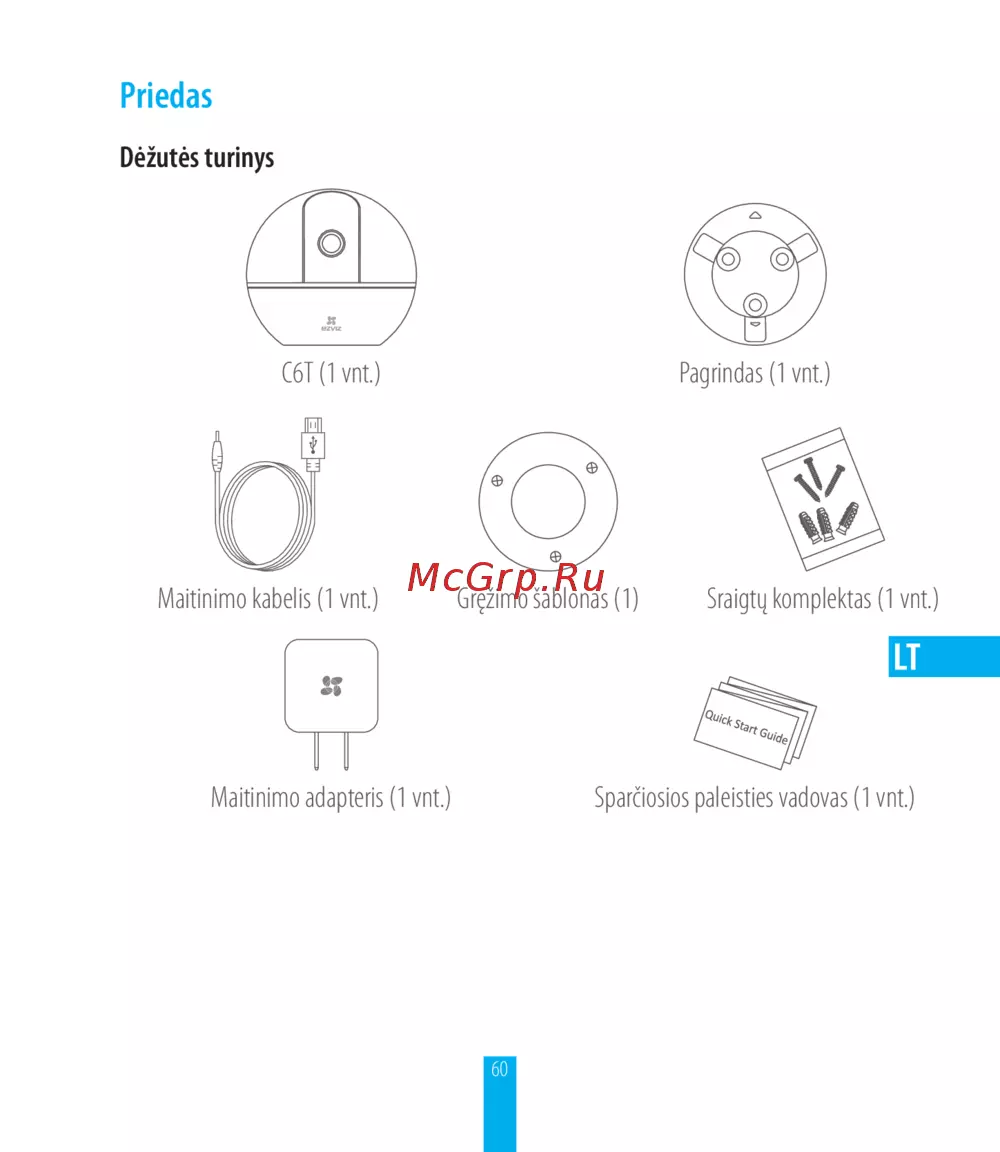 Maitinimo kabelis (1vnt.) Gręžimo šablonas (1) Sraigtų komplektas (1vnt.)