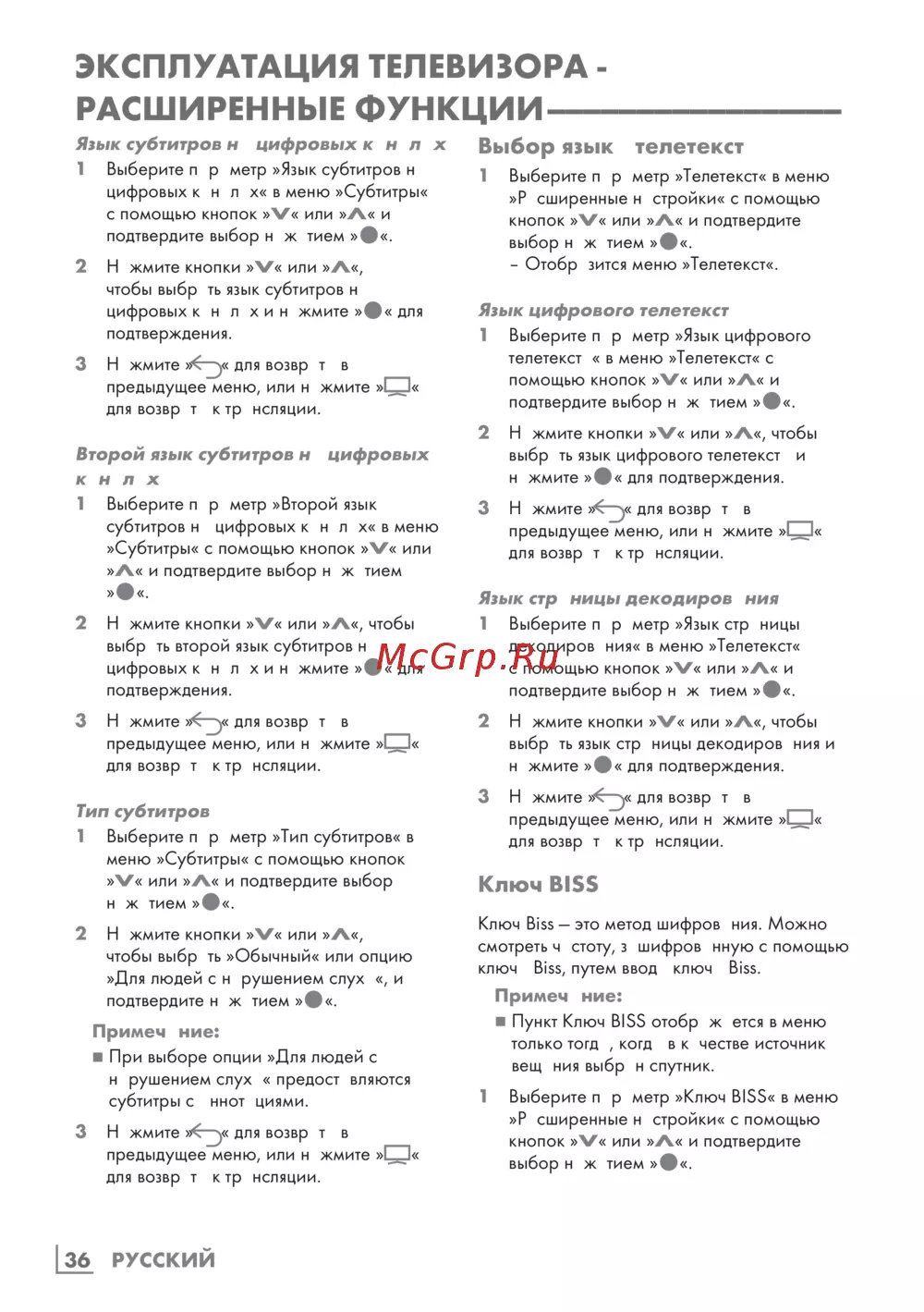 Grundig 50GGU7900B — настройка субтитров и телетекста на цифровых каналах [36/124]