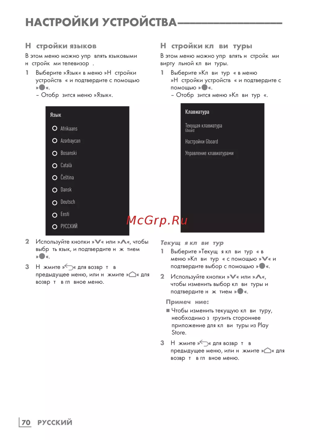 Grundig 50GGU7900B — настройки языков и клавиатуры на устройстве: пошаговое руководство [70/124]