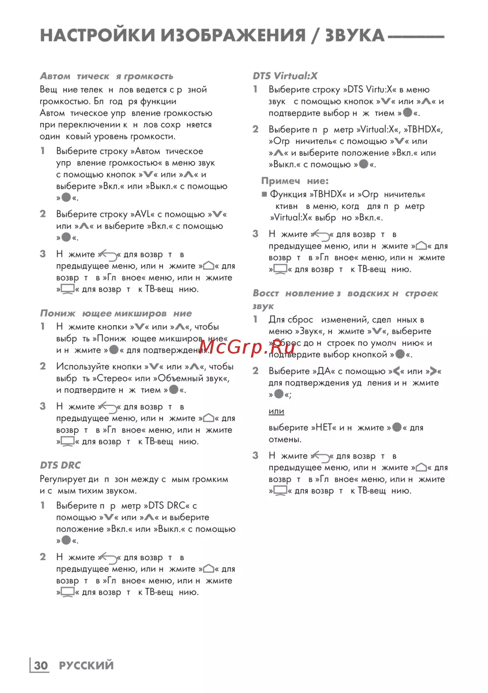 Grundig 50GGU7950A — настройки звука и изображения: автоматическая громкость и другие функции [30/124]