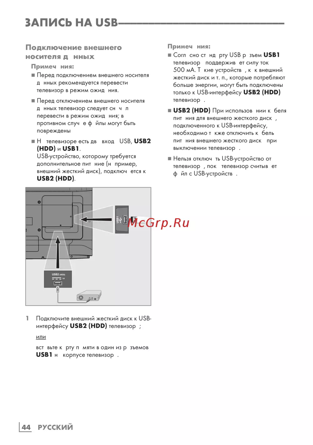 интерфейсу USB2 (HDD) телевизора;