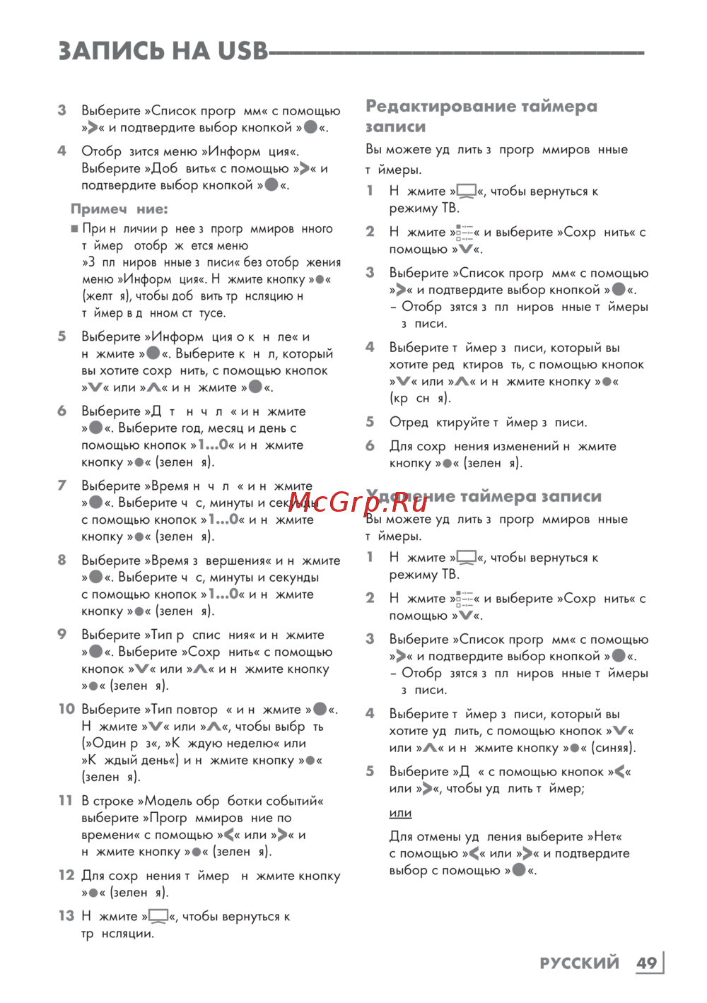 Grundig 50GGU7950A — инструкция по записи на USB: настройка и редактирование таймеров [49/124]