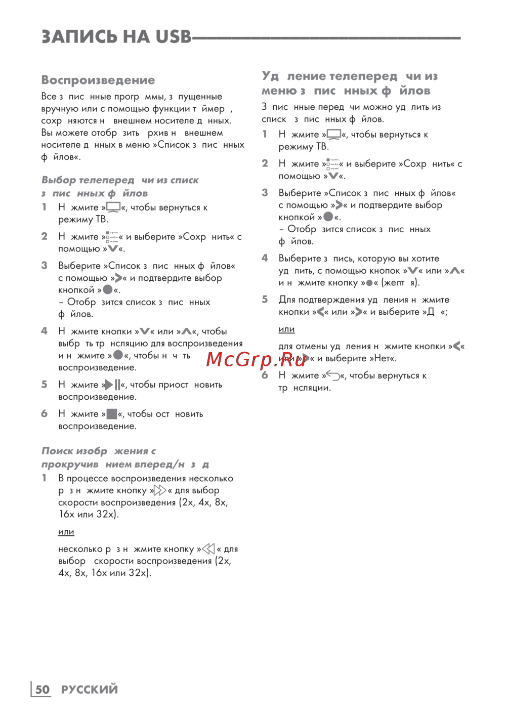 Grundig 50GGU7950A — инструкция по записи и воспроизведению на USB-накопителе [50/124]