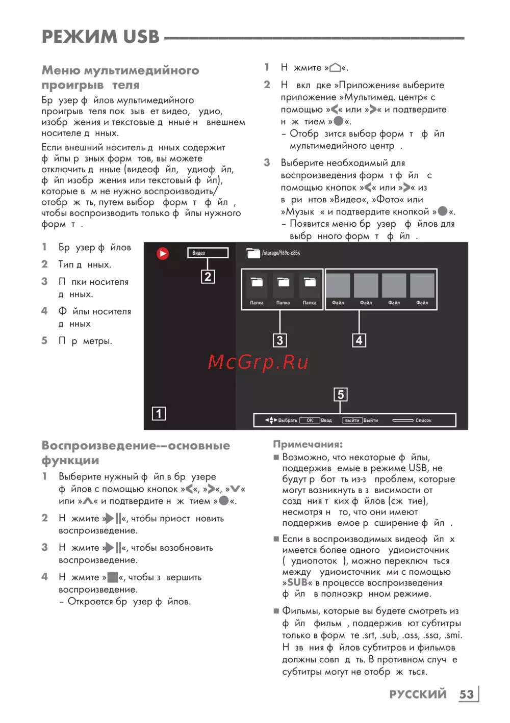Узнайте, как воспроизводить видео, аудио и изображения с внешнего носителя через мультимедийный проигрыватель. Подробные инструкции и советы по выбору формата файлов.