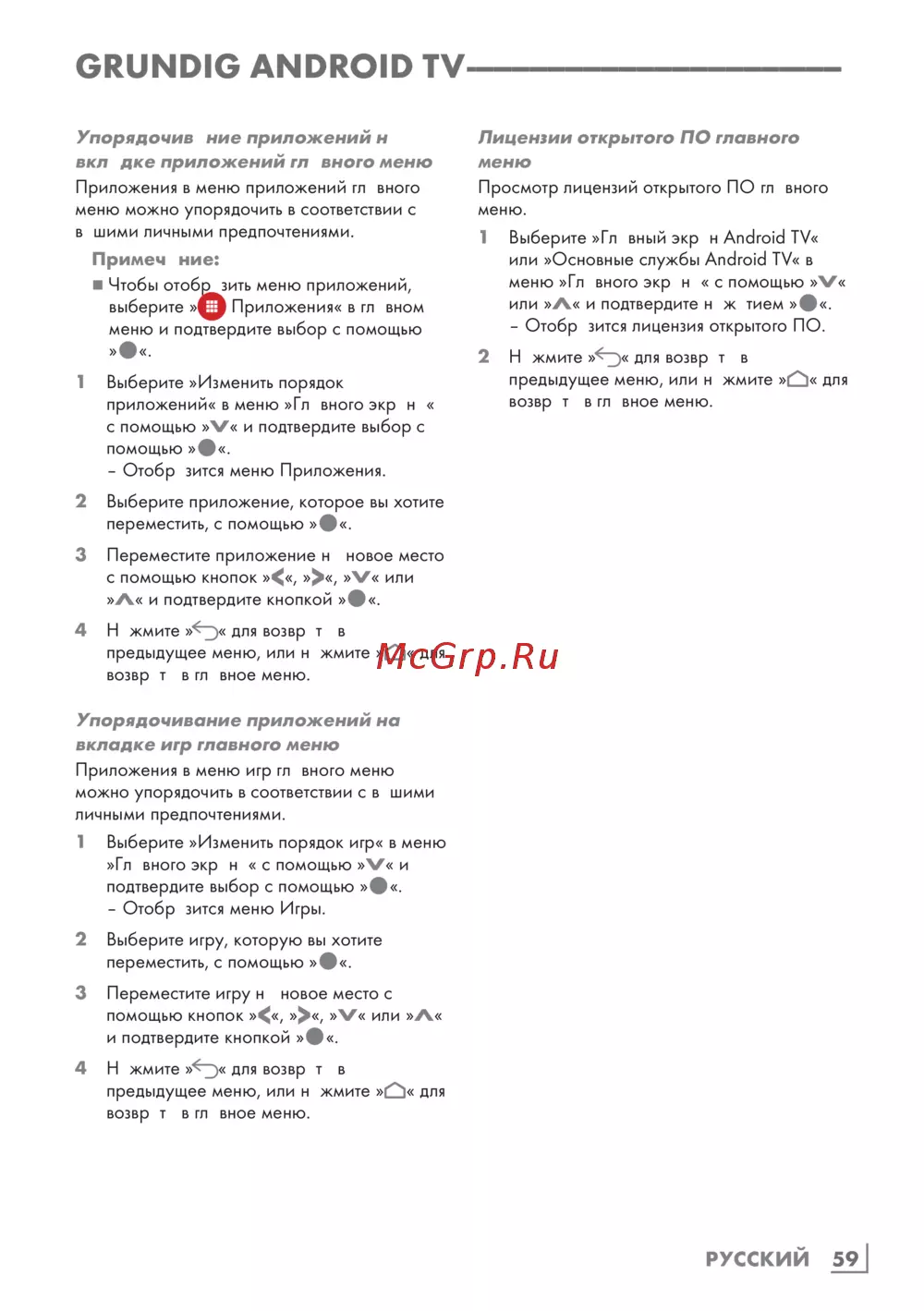 Grundig 50GGU7950A — упорядочивание приложений и игр в главном меню Android TV [59/124]