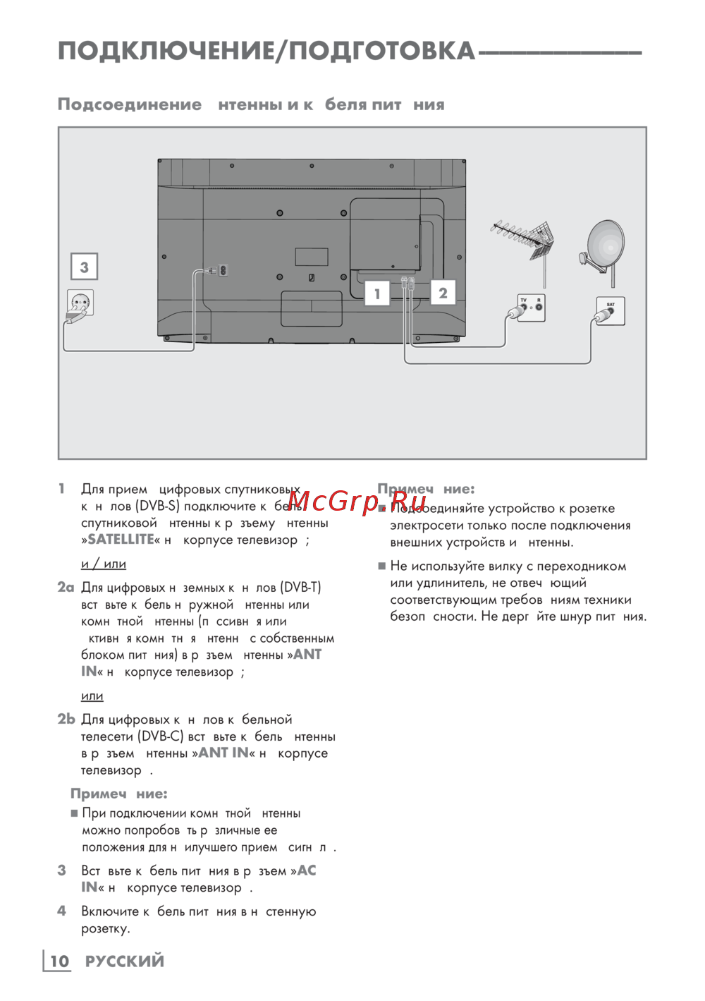 Узнайте, как правильно подключить антенну и кабель питания к телевизору для приема цифровых спутниковых и наземных каналов. Следуйте простым инструкциям.