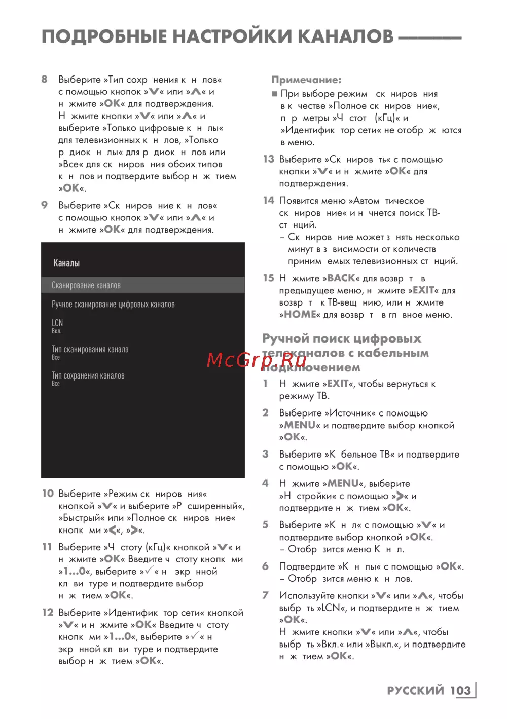 - Ручной поиск цифровых телеканалов с кабельным подключением p.103