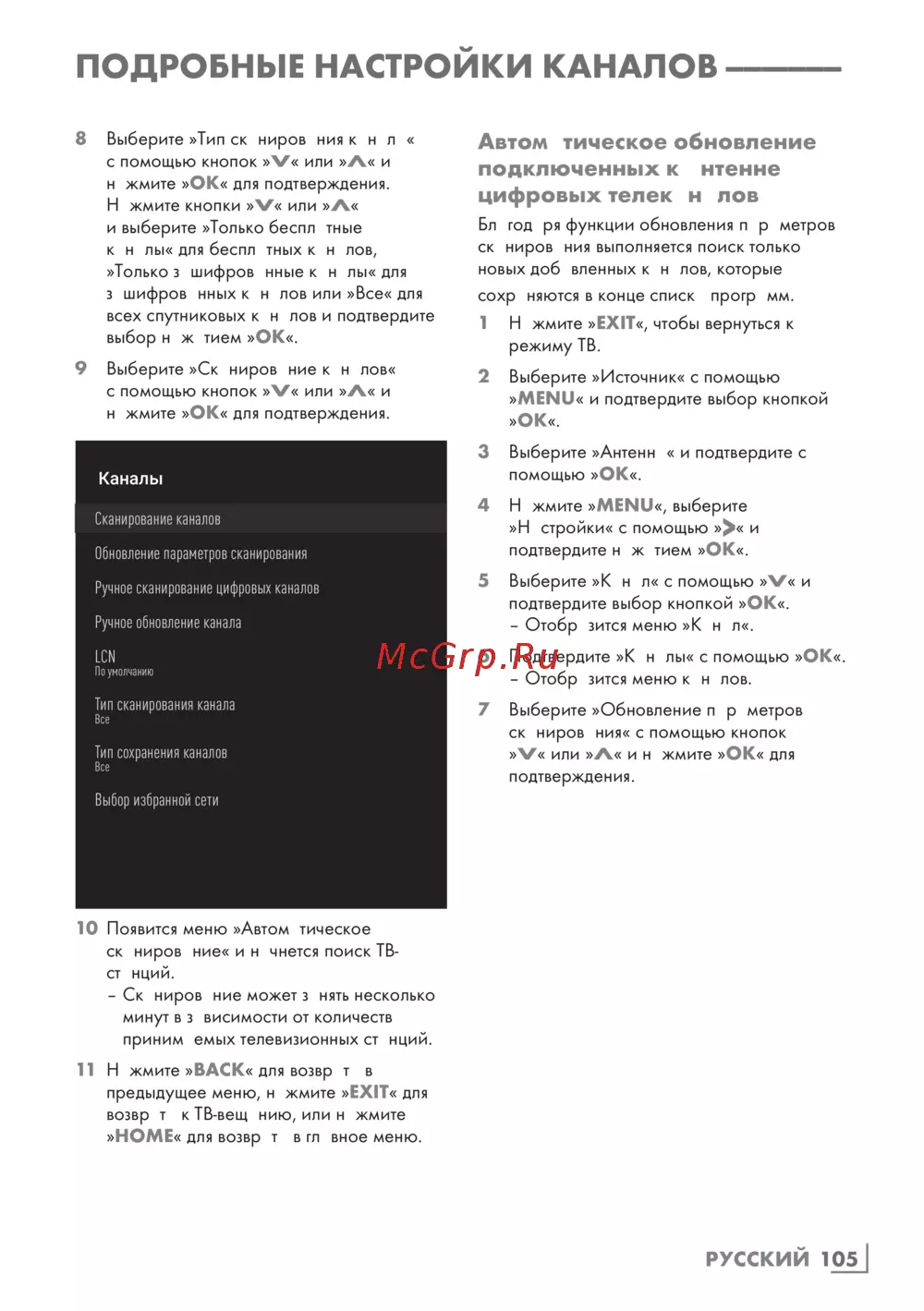 - Автоматическое обновление подключенных к антенне цифровых телеканалов p.105