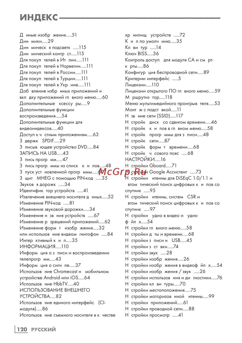 Grundig 55GGU8960 [120/125] Индекс