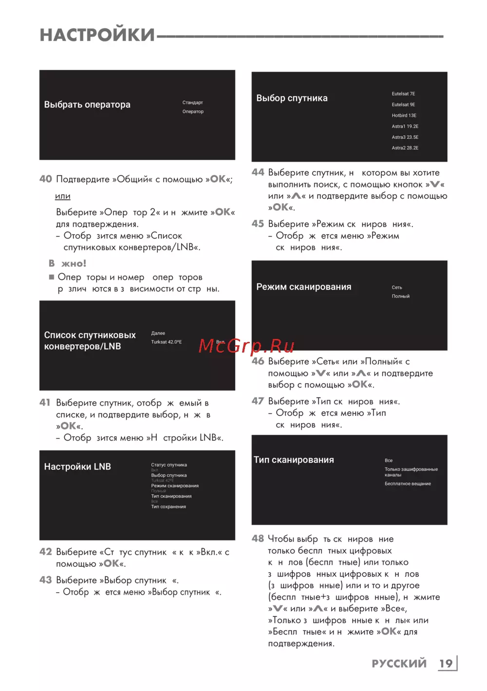 Grundig 55GGU8960 — настройка спутникового оборудования: пошаговое руководство [19/125]