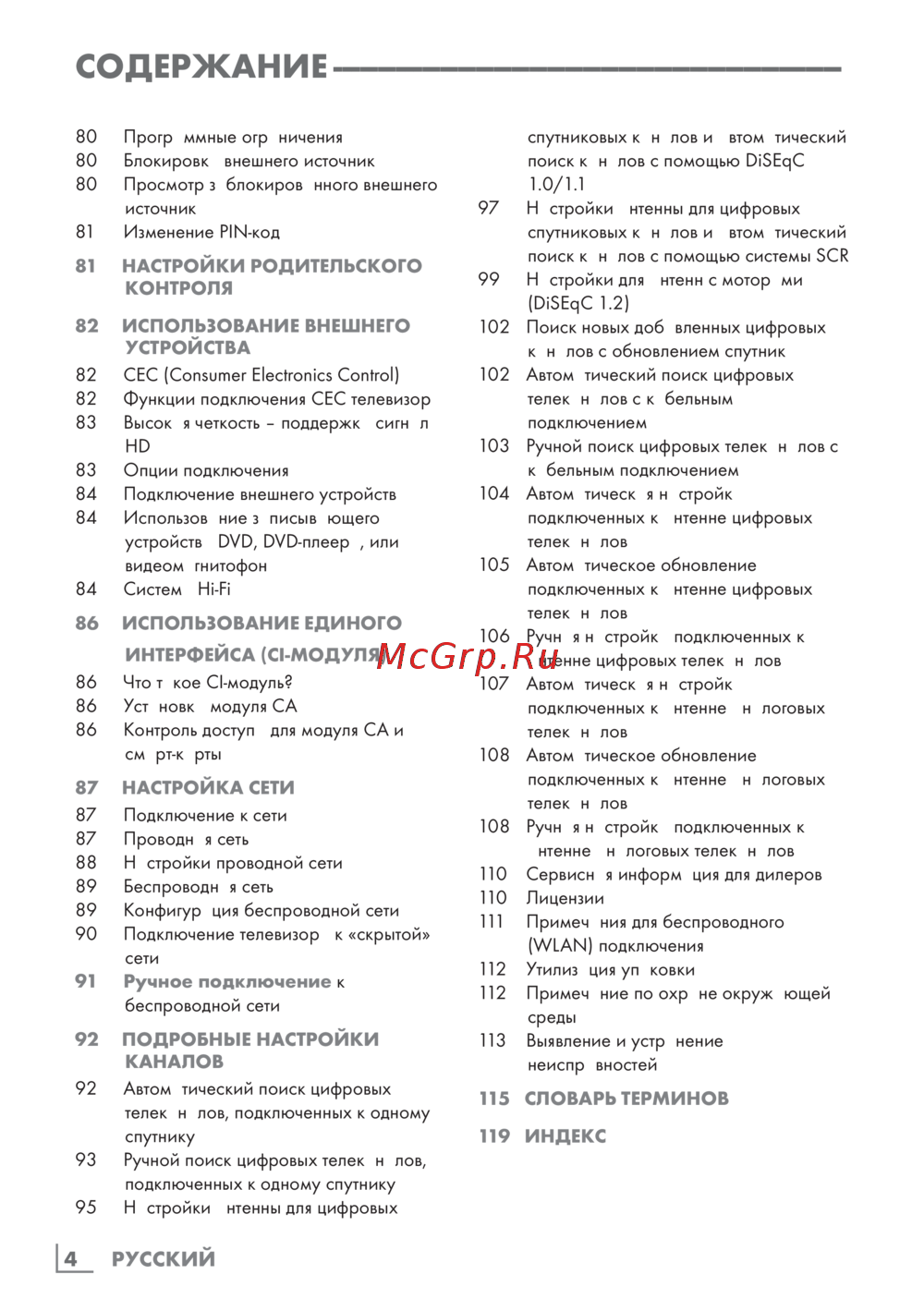 - Ручная настройка подключенных к антенне аналоговых телеканалов p.108