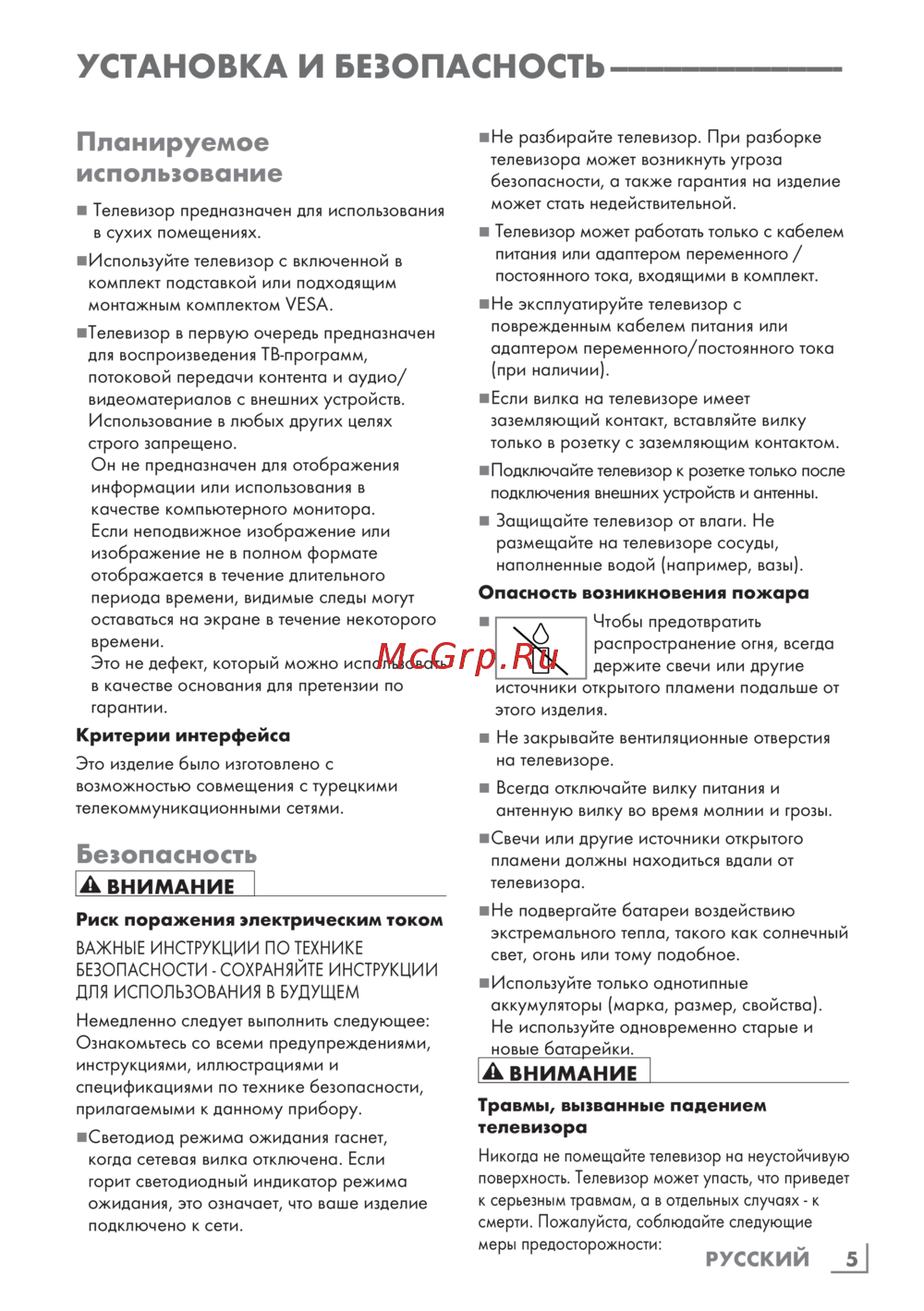 Grundig 55GGU8960 — инструкции по установке и безопасности телевизора [5/125]