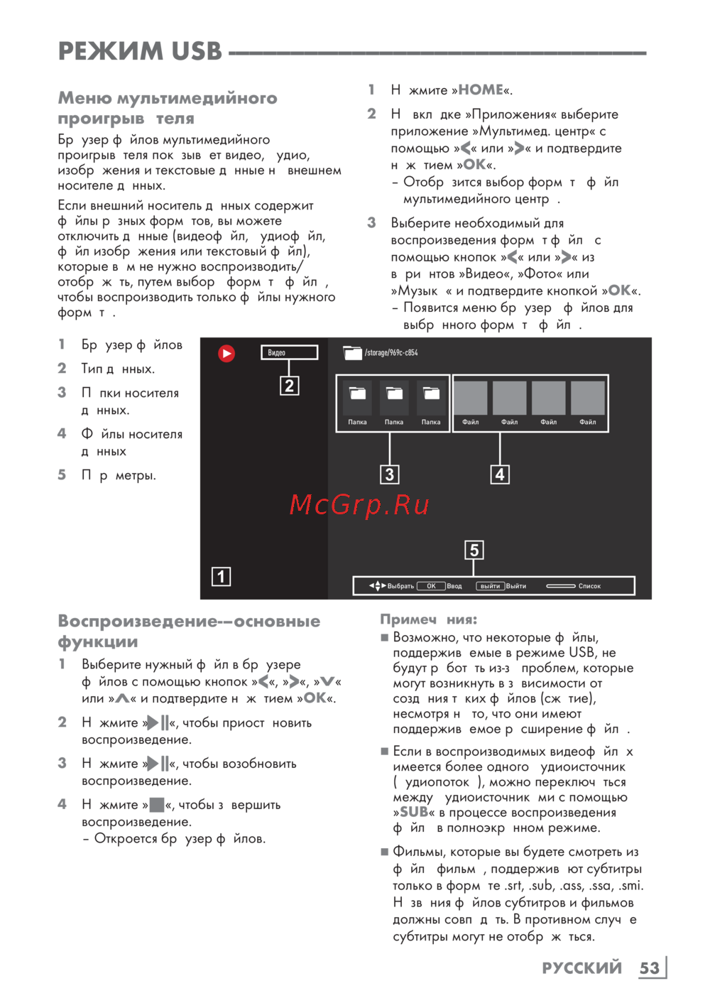 Grundig 55GGU8960 — управление мультимедийным проигрывателем через USB-режим [53/125]
