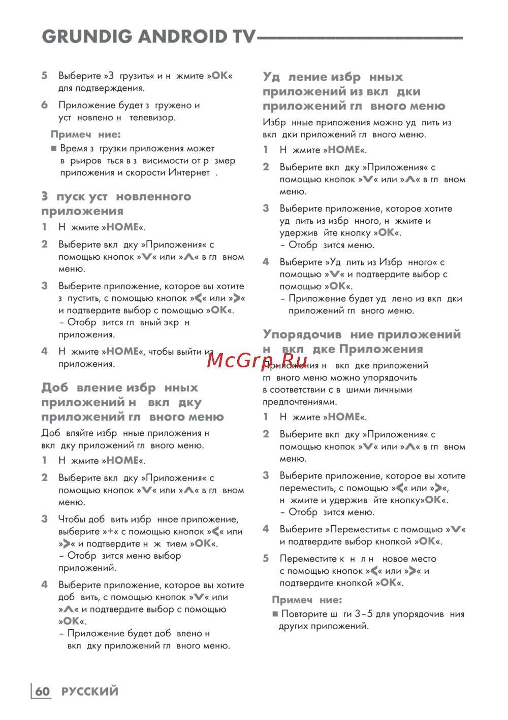 ![Grundig 55GGU8960 [60/125] Добавление избранных приложений на вкладку приложений главного меню](/views2/1892363/page60/bg3c.png)
