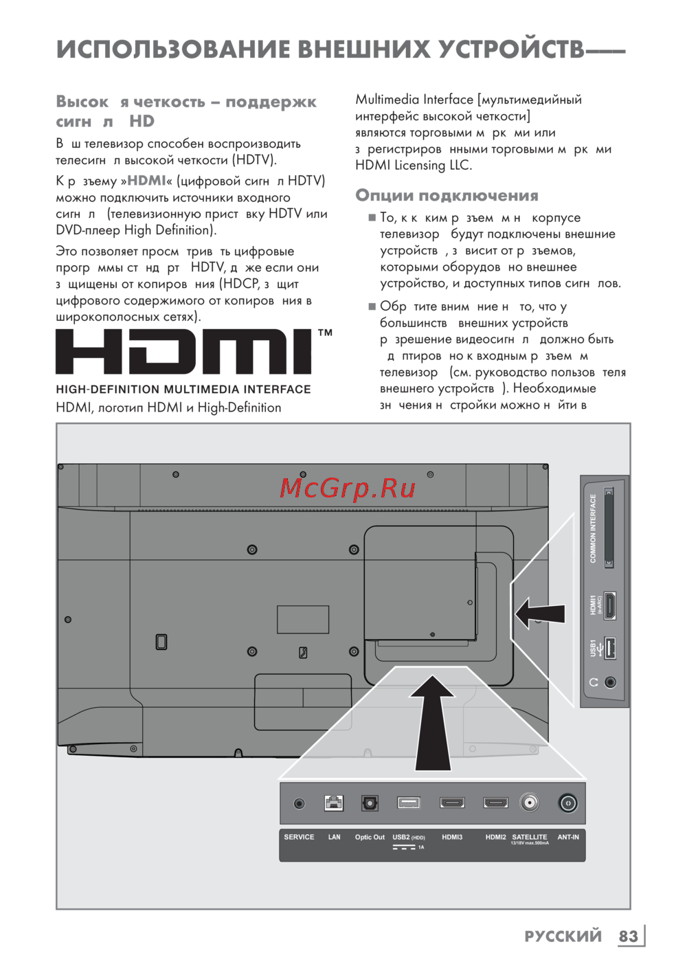 Grundig 55GGU8960 — подключение внешних устройств к телевизору с поддержкой HD [83/125]