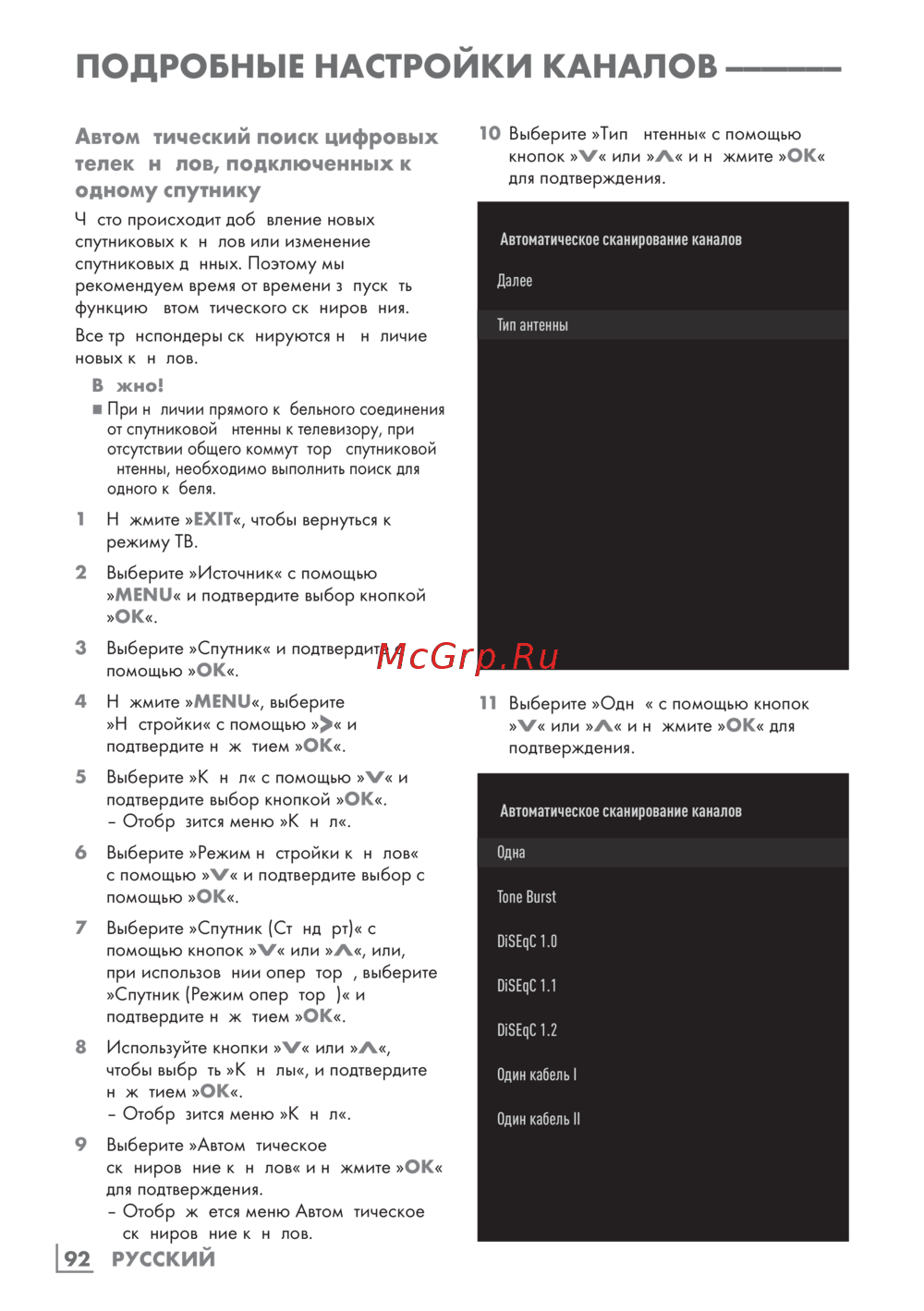- Автоматический поиск цифровых телеканалов подключенных к одному спутнику p.92