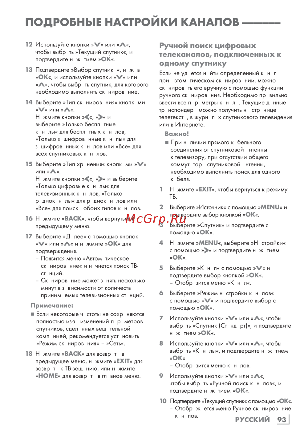 - Ручной поиск цифровых телеканалов подключенных к одному спутнику p.93