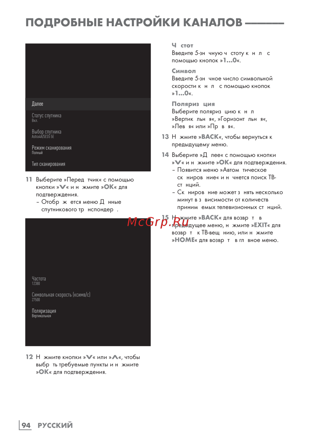 - Ручной поиск цифровых телеканалов подключенных к одному спутнику p.93