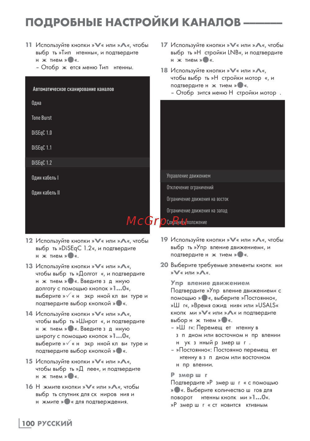 - Настройки для антенн с моторами diseqc 1 p.99