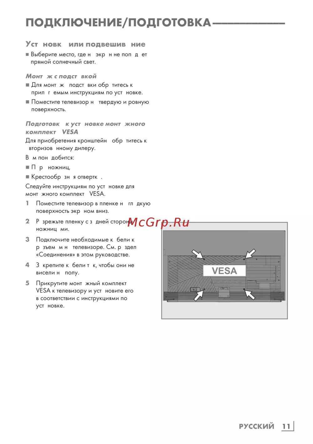 Grundig 55OLEDGG970B — инструкция по установке телевизора: подготовка и монтаж [11/124]