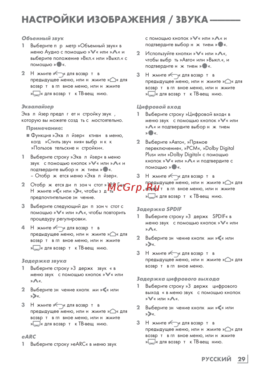 Grundig 55OLEDGG970B — настройки звука и изображения: объемный звук и эквалайзер [29/124]