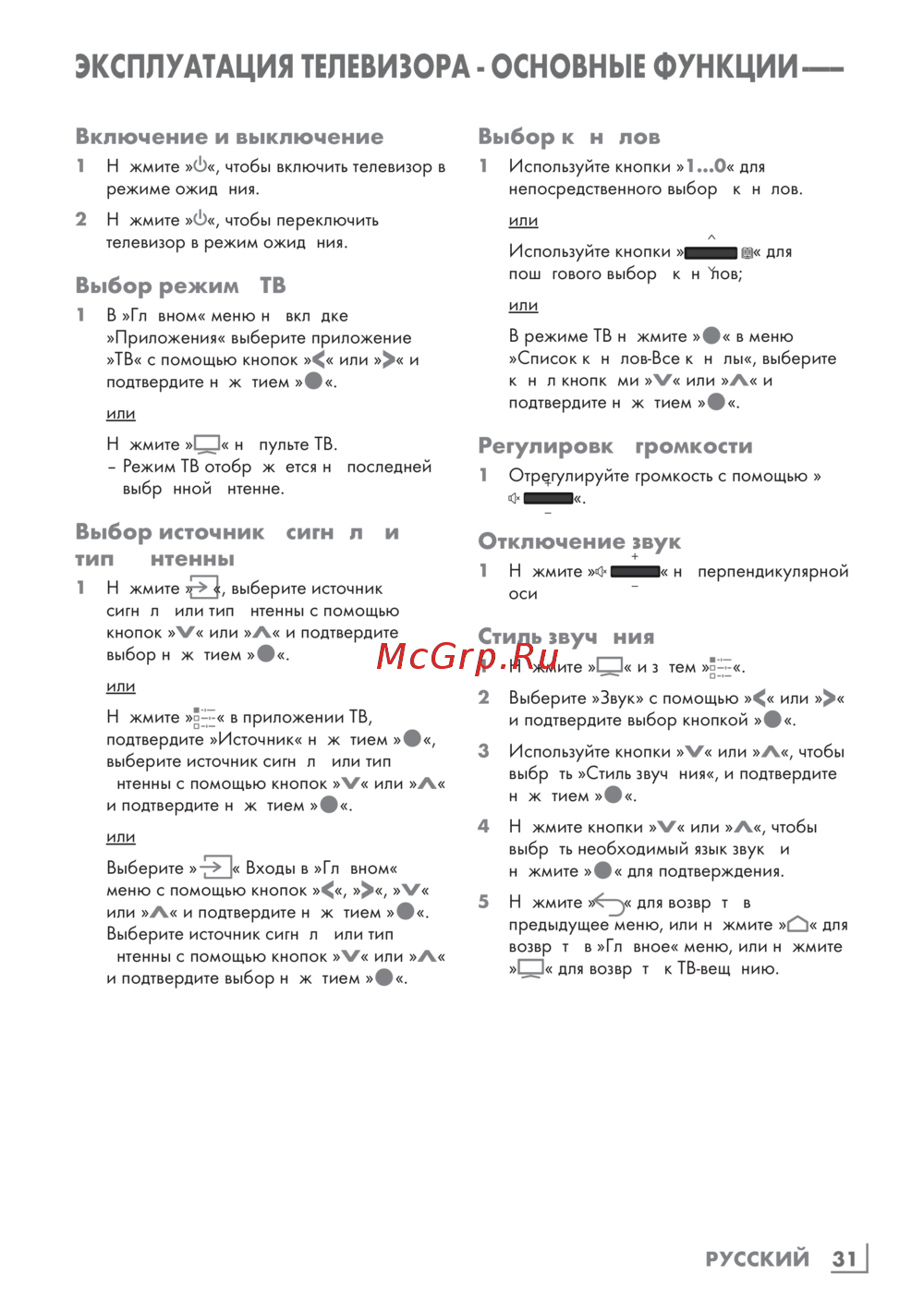 ![Grundig 55OLEDGG970B [31/124] Эксплуатация телевизора основные функции](/views2/1892367/page31/bg1f.png)