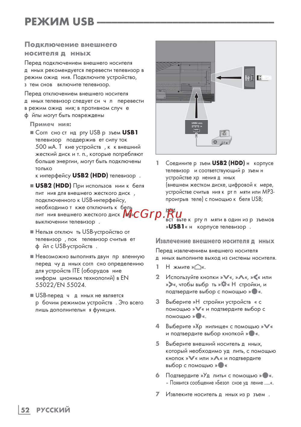 Узнайте, как правильно подключать и извлекать внешние носители данных к телевизору. Следуйте рекомендациям для безопасного использования USB-устройств.