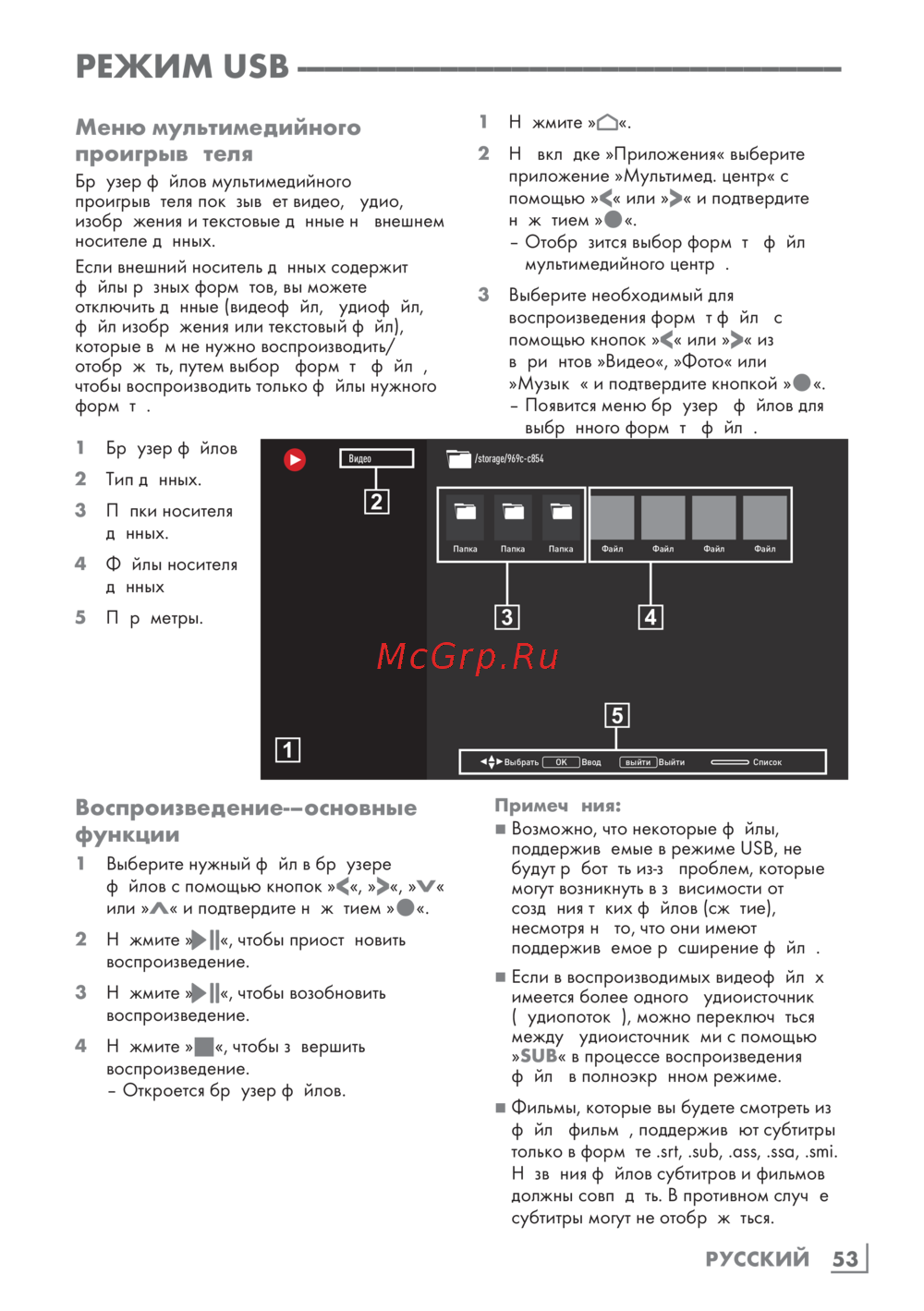 Grundig 55OLEDGG970B — как использовать мультимедийный проигрыватель в режиме USB [53/124]