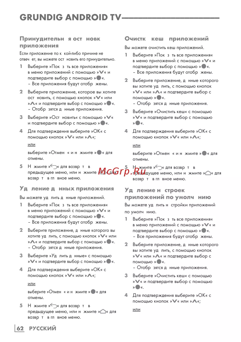 Grundig 55OLEDGG970B — как управлять приложениями на Android TV: остановка и удаление данных [62/124]