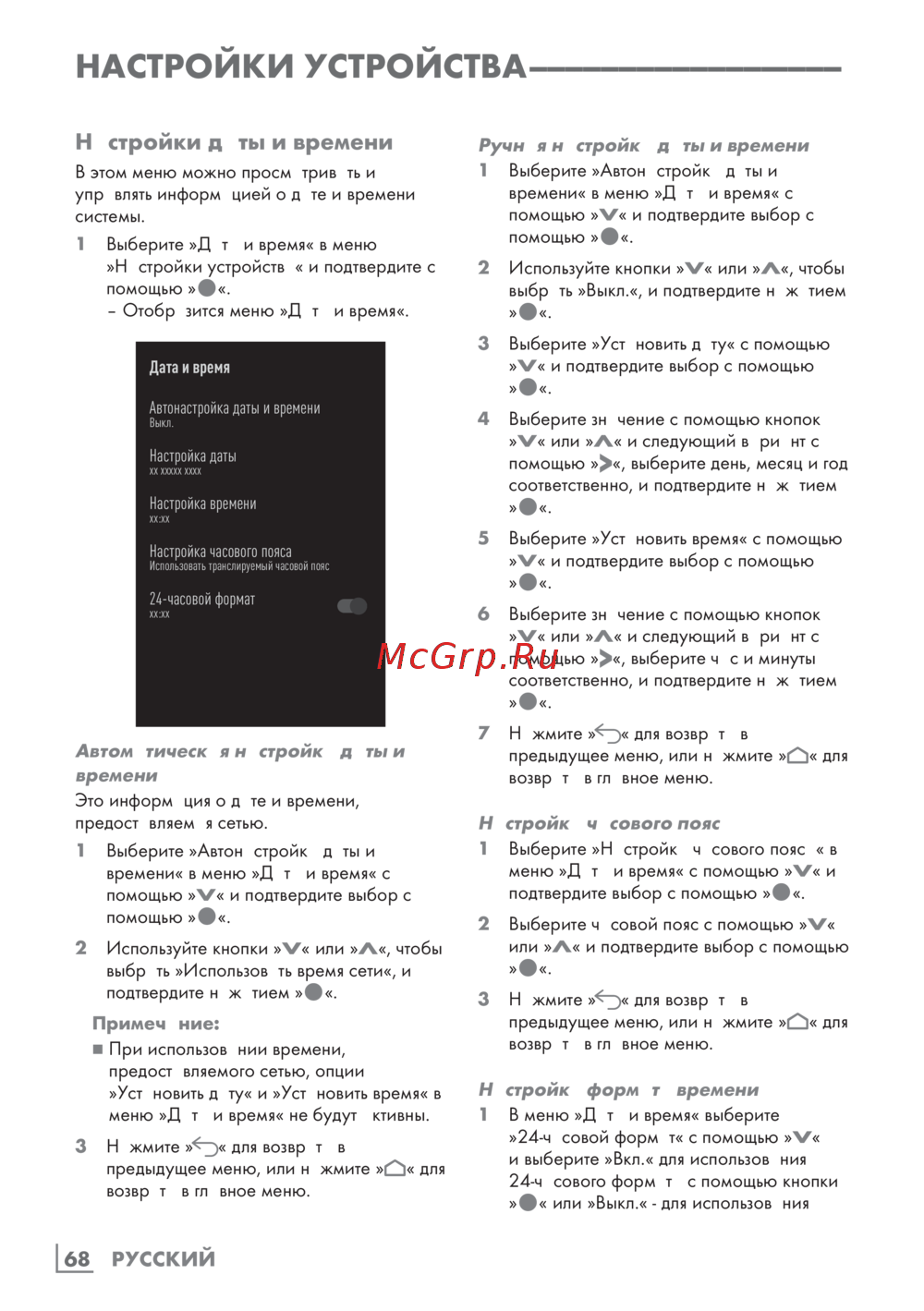 Grundig 55OLEDGG970B — настройки даты и времени на устройстве: пошаговое руководство [68/124]
