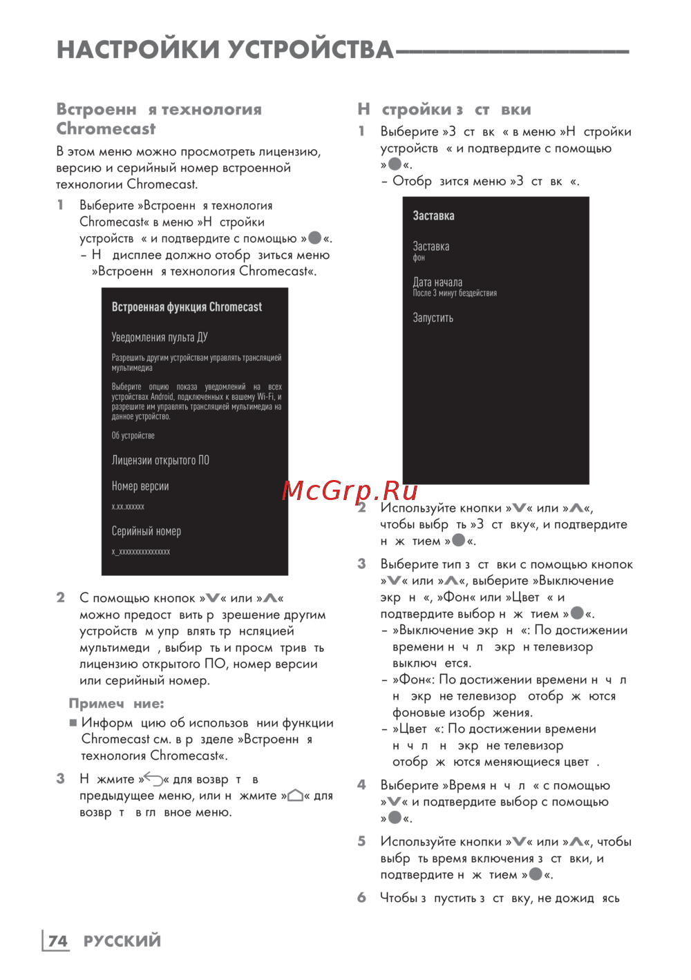 Grundig 55OLEDGG970B — настройки устройства: управление Chromecast и заставкой [74/124]