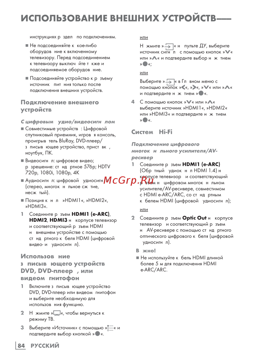 ![Grundig 55OLEDGG970B [84/124] Подключение внешнего устройства](/views2/1892367/page84/bg54.png)