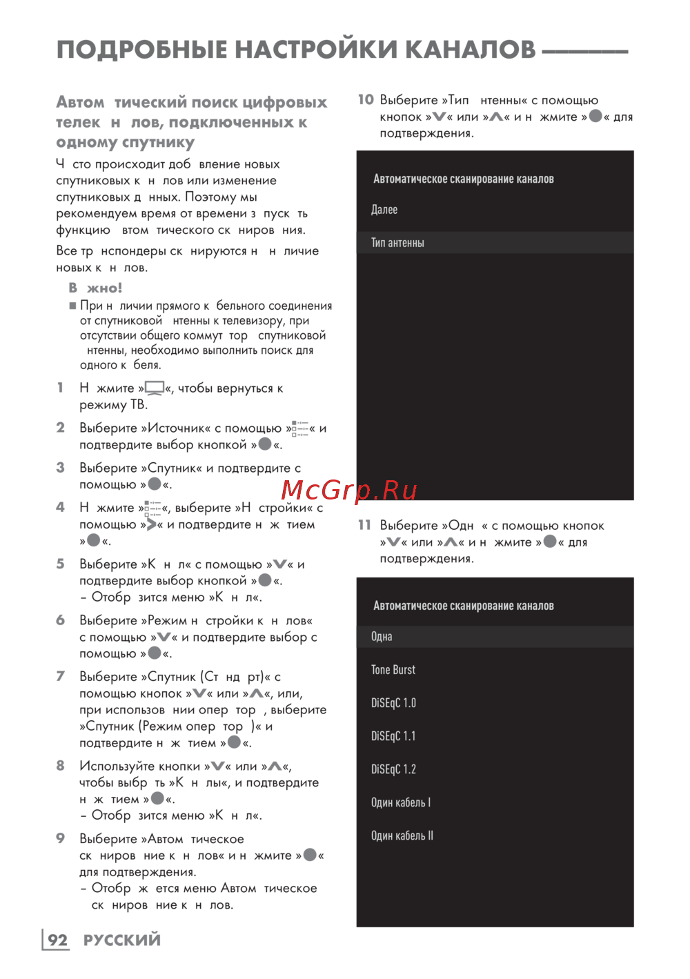 - Настройки антенны для цифровых спутниковых каналов и автоматический поиск каналов с помощью diseqc 1 1 p.95