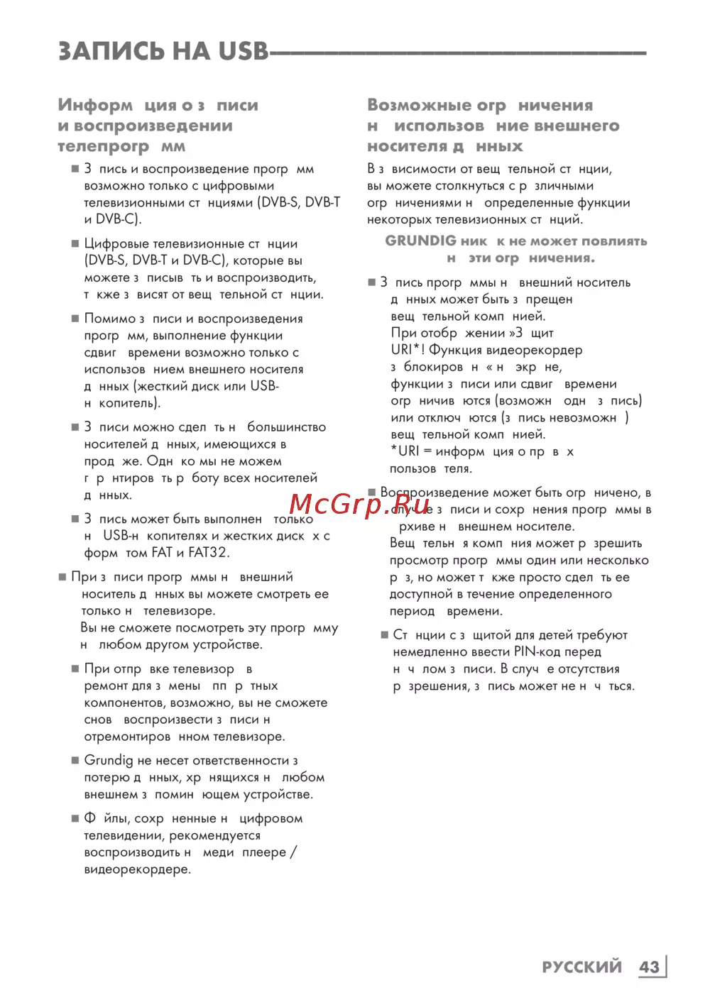 ![Grundig 65OLEDGG970B [43/124] Возможные ограничения на использование внешнего носителя данных](/views2/1892368/page43/bg2b.png)