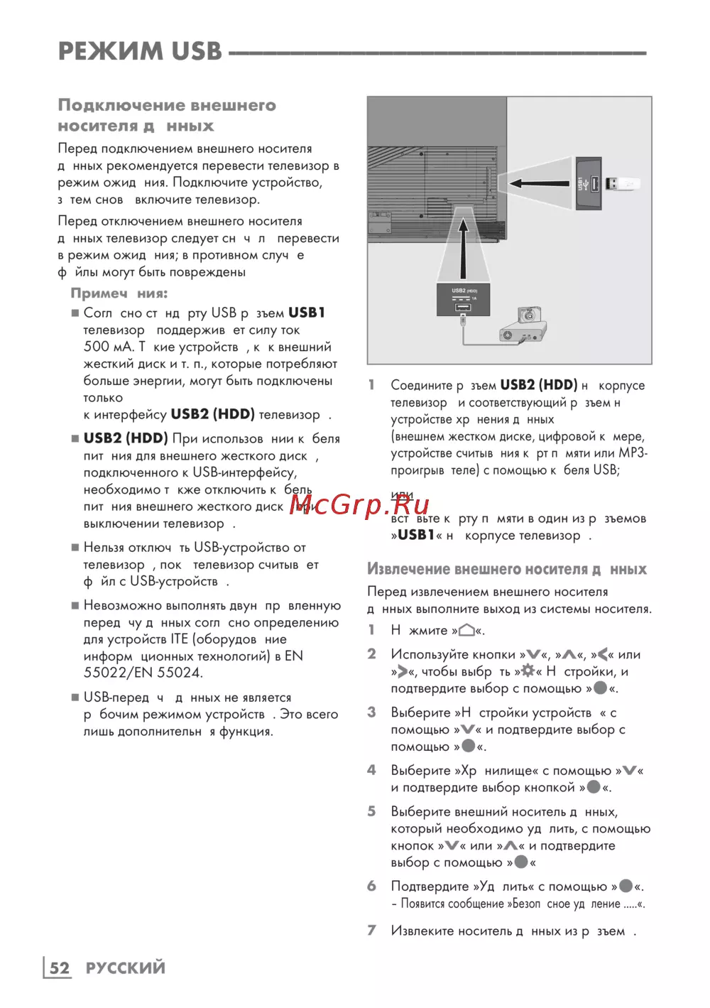Grundig 65OLEDGG970B — как правильно подключать и извлекать USB-устройства к телевизору [52/124]