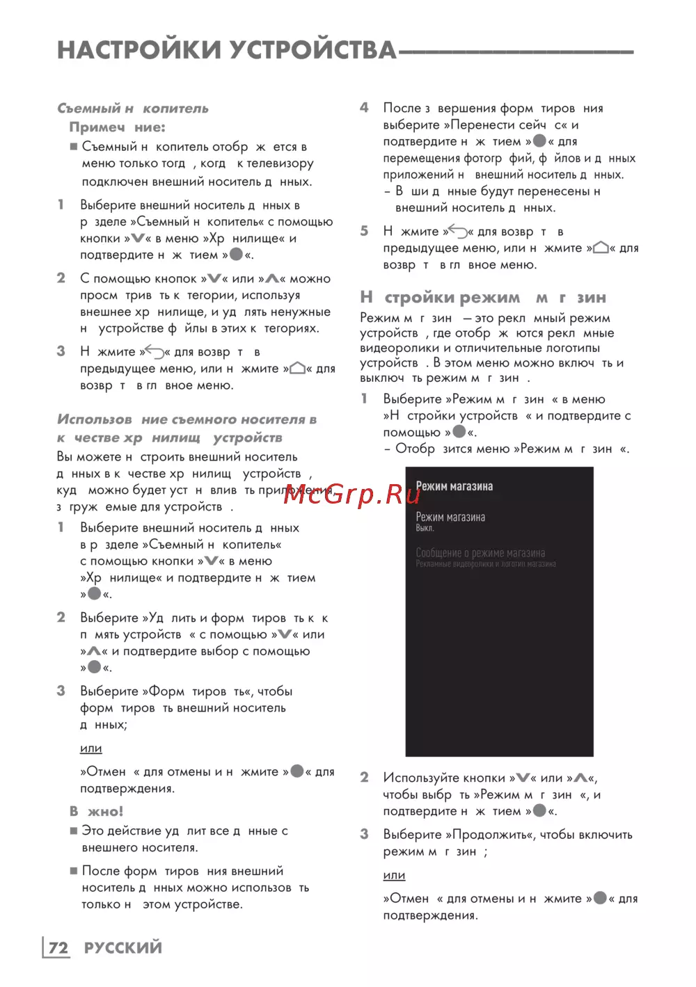 Grundig 65OLEDGG970B — настройки устройства: использование съемного накопителя и режим магазина [72/124]