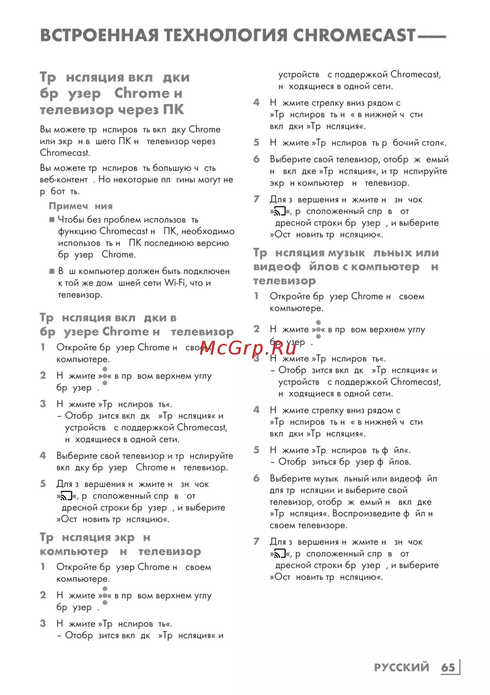 Grundig 55GOB9290 — как транслировать экран и вкладки браузера на телевизор [65/124]