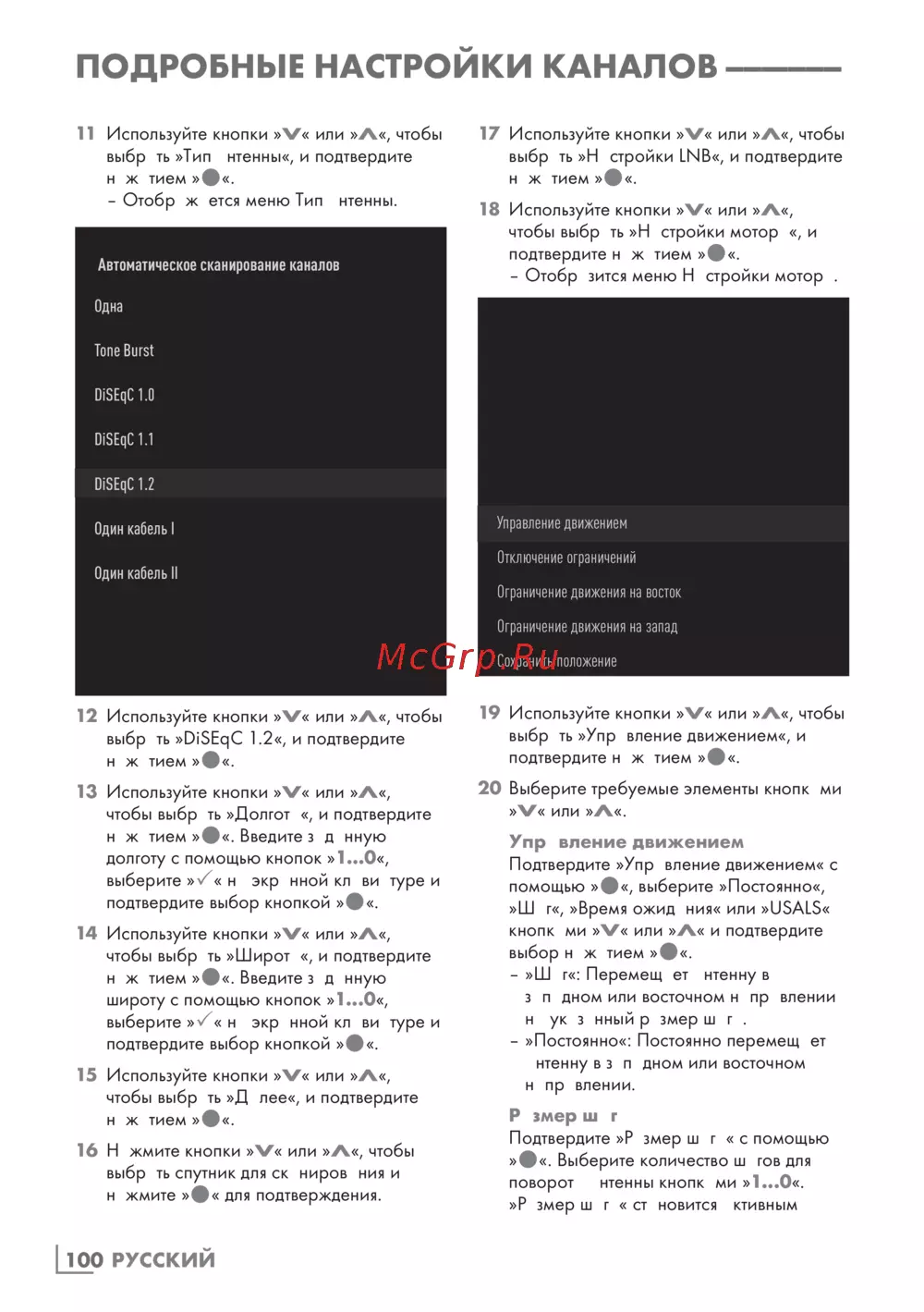 - Настройки антенны для цифровых спутниковых каналов и автоматический поиск каналов с помощью diseqc 1 1 p.95