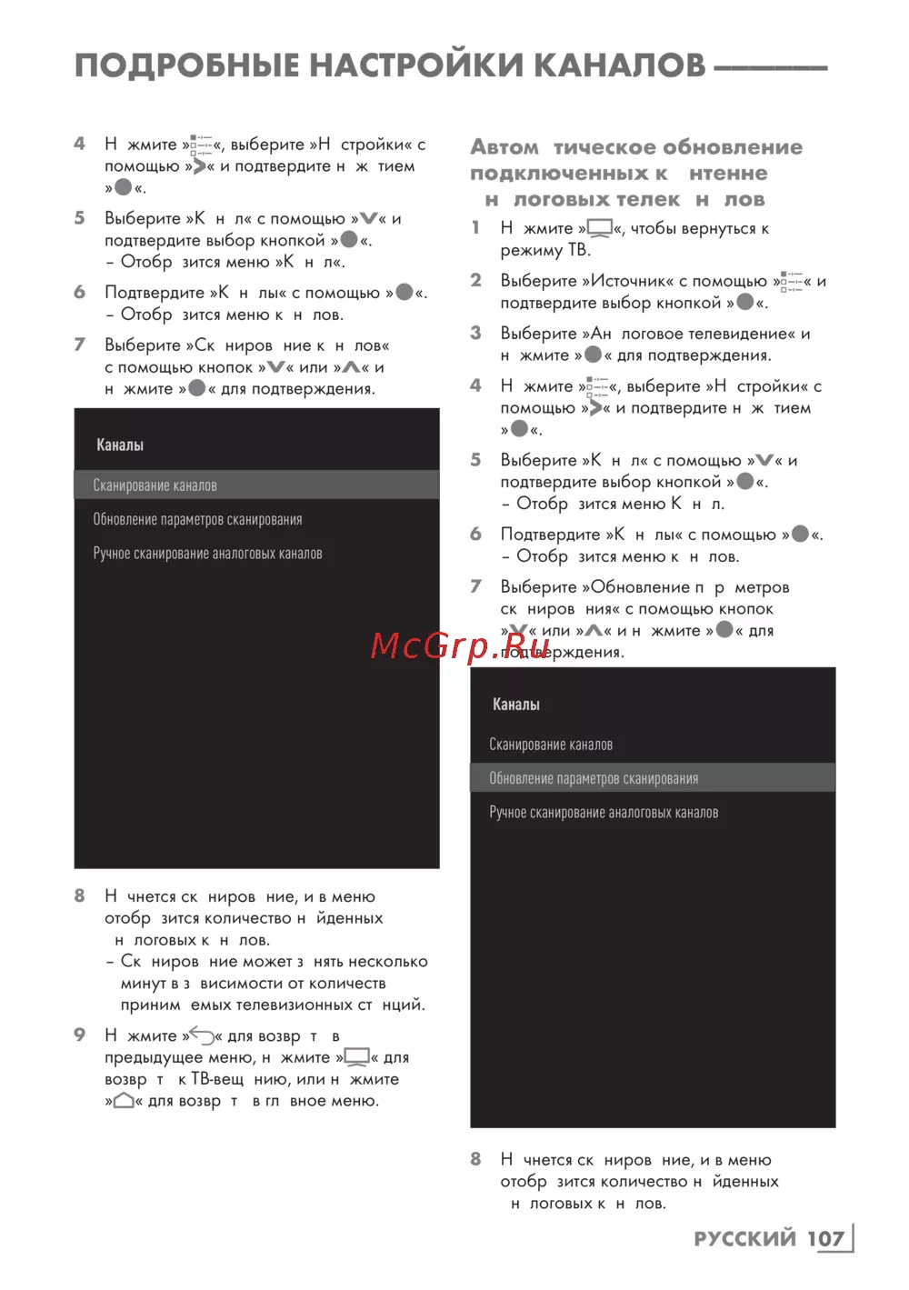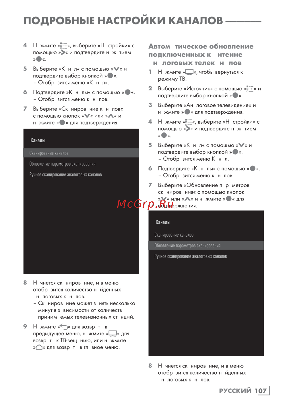 - Автоматическое обновление подключенных к антенне аналоговых телеканалов p.107