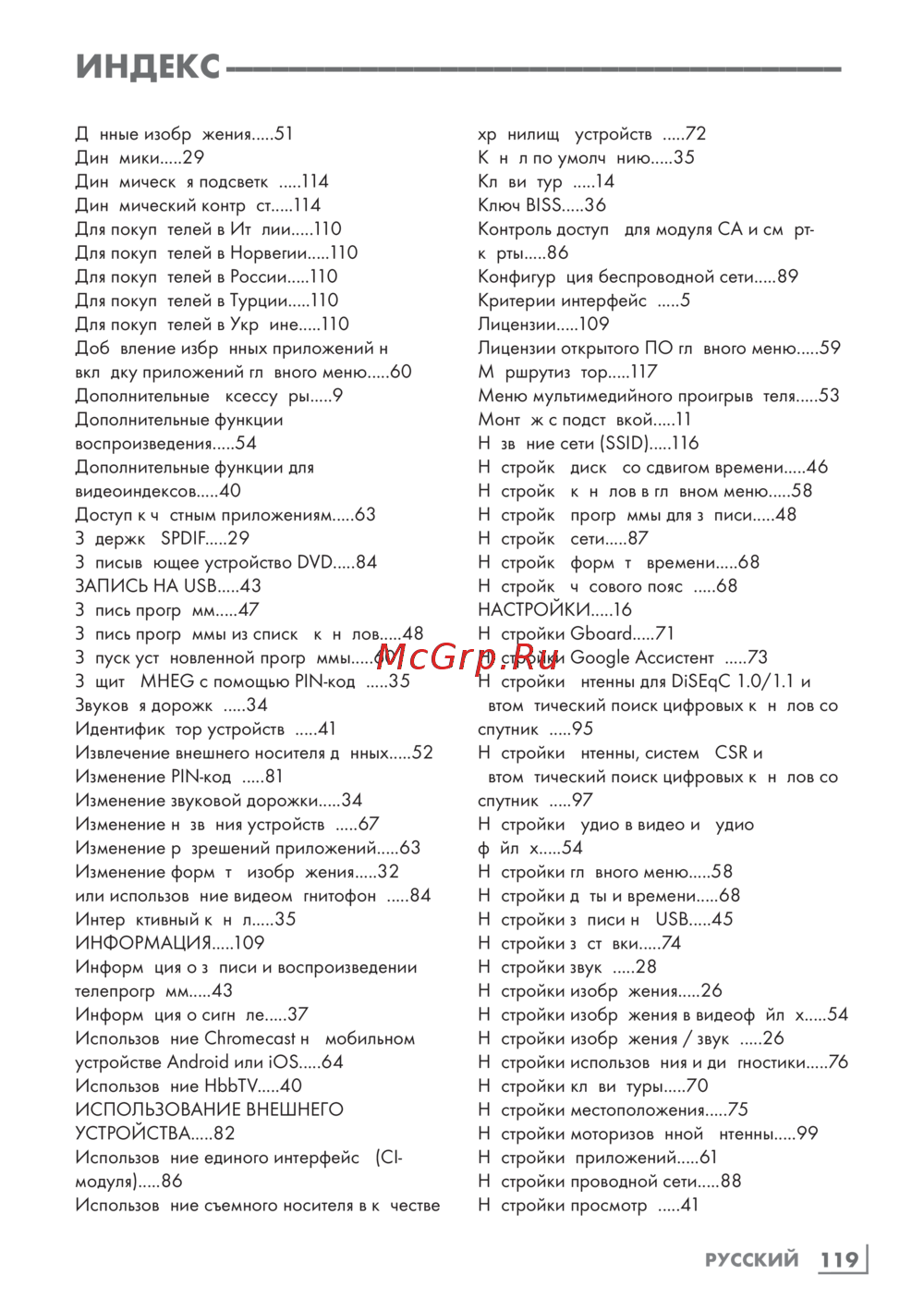 - Автоматическое обновление подключенных к антенне цифровых телеканалов p.105