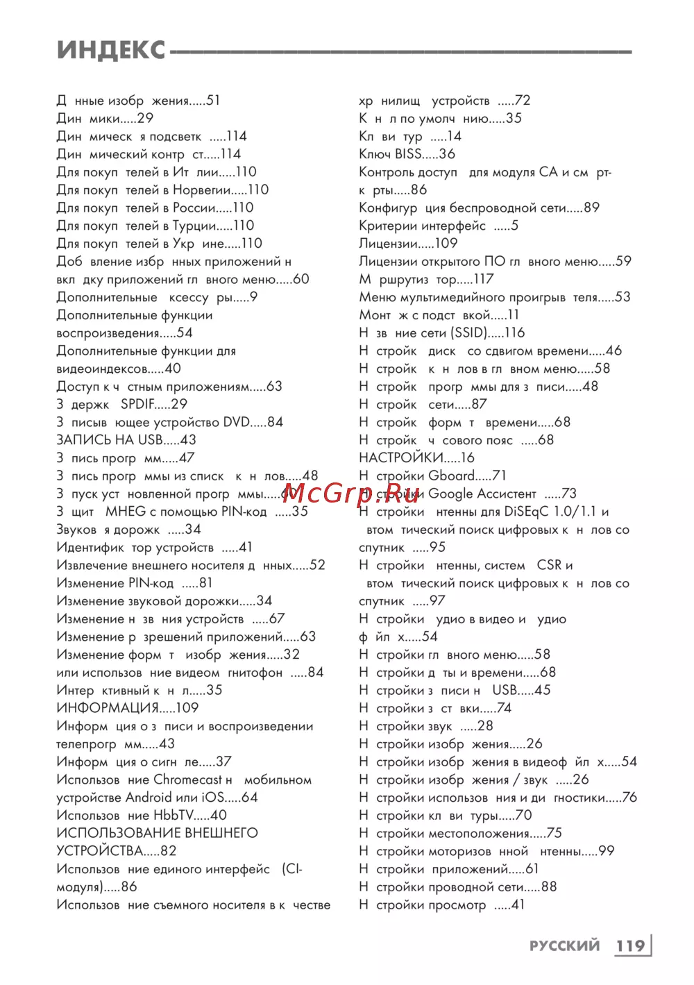 - Ручная настройка подключенных к антенне аналоговых телеканалов p.108