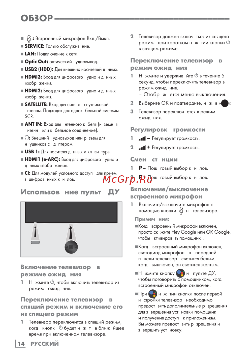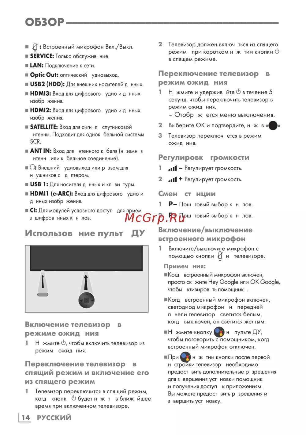 Узнайте, как управлять телевизором: включение из спящего режима, регулировка громкости, смена каналов и использование встроенного микрофона. Подробная инструкция.