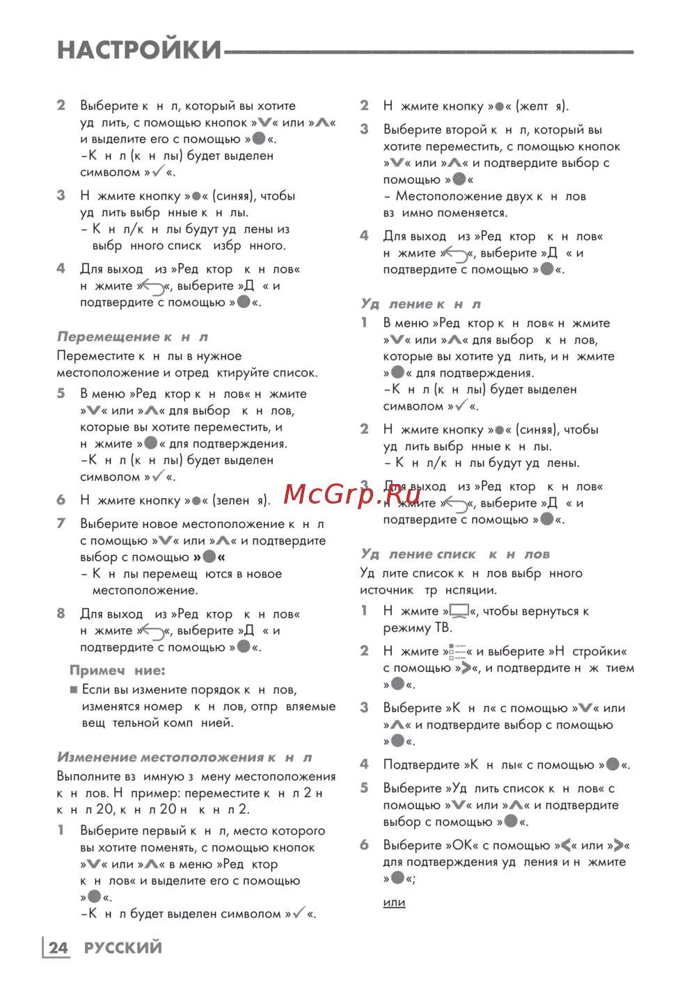 Grundig 65GOB9290 — инструкция по редактированию и удалению каналов [24/124]